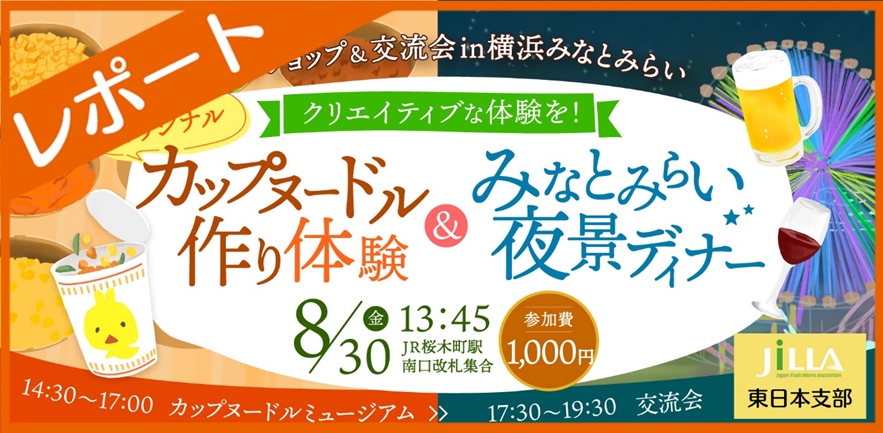 JILLA会員のみなさん、こんにちは。東日本支部副支部長の桜です。 今回は、会員同士クリエイティブな体験とお食事交流がとれたらということで8月30日(金)に「横浜カップヌードルミュージアム」と「夜景の…