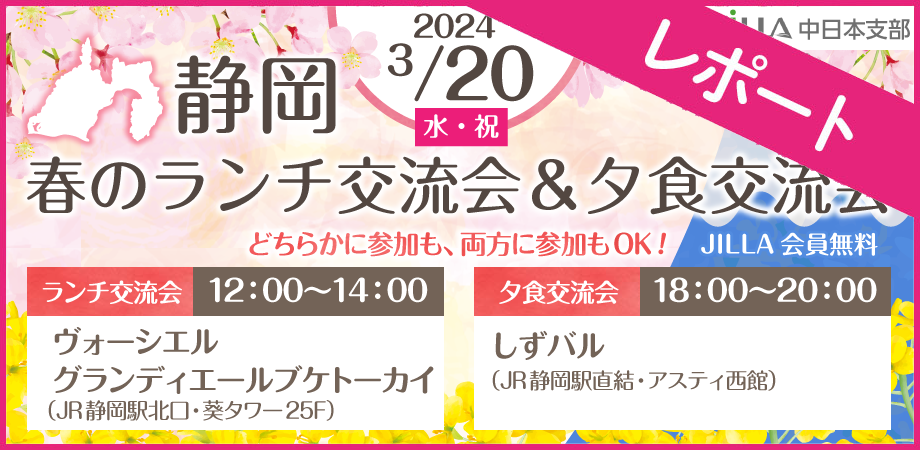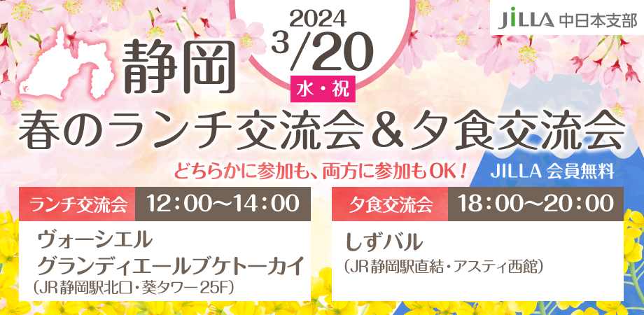 みなさんこんにちは、JILLA中日本支部です。 今回中日本支部では、春の訪れを感じる3月20日(水・祝)、静岡県に赴き組合員の皆様たちと交流する機会を設けました。静岡の美しい景色や美味しいグルメを楽し…