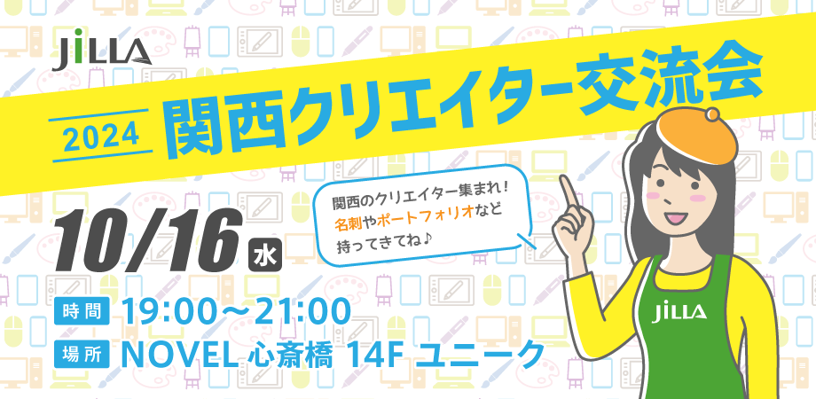 2024年10月16日(水)19:00より、JILLA主催「関西クリエイター交流会2024」を、大阪(心斎橋)で開催します! 場所は前回会場とは異なり、御堂筋線心斎橋駅7番出口より徒歩3分、なんば駅2…