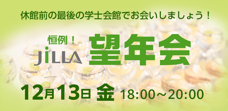 【東京】恒例!JILLA望年会 開催のお知らせの詳細